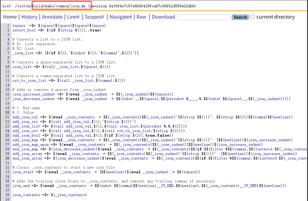 在buid/make/common里面定义了json.mk文件,这是Android构建系统中用于生成JSON格式配置的Makefile工具文件,其中我们最关注的
