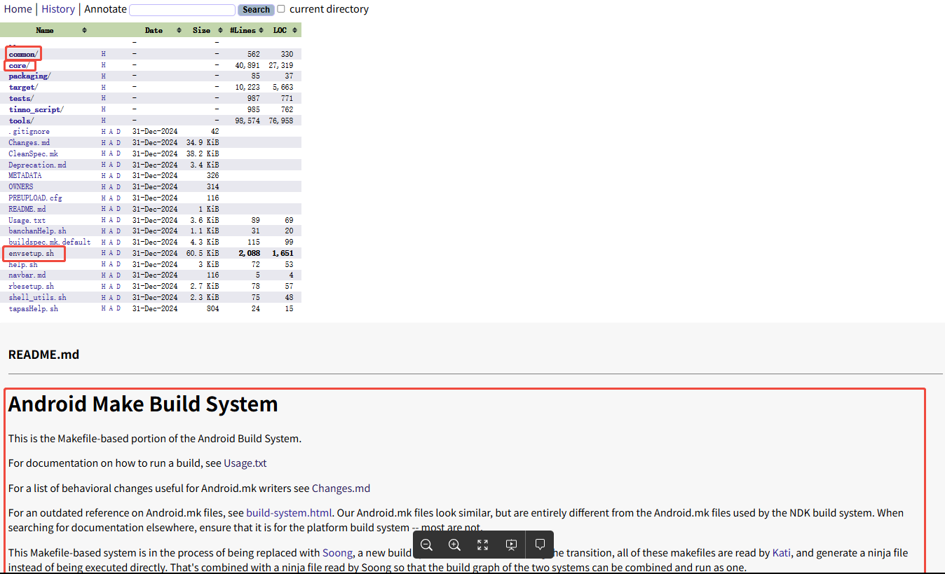 google已经给出了android的原生编译流程:source build/envsetup.sh加载命令初始化环境、lunch选择平台、make执行编译命令。其编译系统源代码如下路径,通过readme的介绍,在最新版本引入了soong工具来代替传统的make。