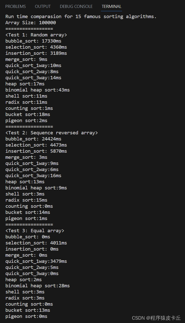注:除了斐波那契堆之外,上文提到的其余14种排序算法均已在本代码中实现。作者以后如有时间,会再手撕一下斐波那契堆。大家如果有兴趣的话,也欢迎补充一下自己写的实现代码~