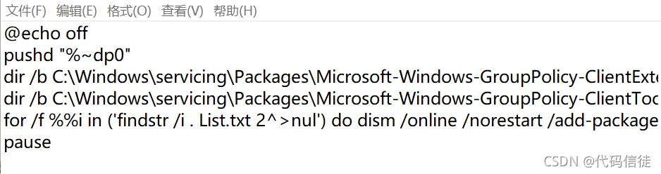 dir /b C:\Windows\servicing\Packages\Microsoft-Windows-GroupPolicy-ClientExtensions-Package~3*.mum >List.txt