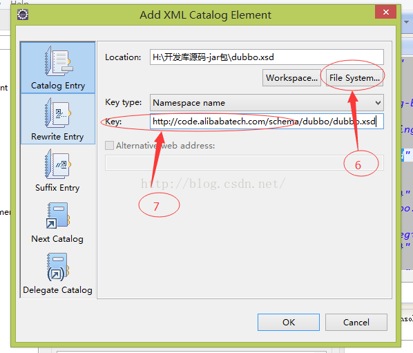 并把xml文件中的schemal空间地址给填入到第7步的Key中。