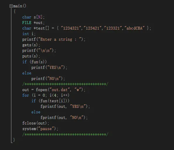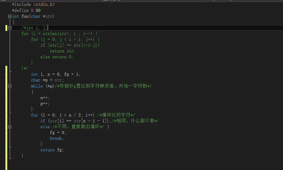 for (i = 0; i < n / 2; i++) /*循环比较字符*/