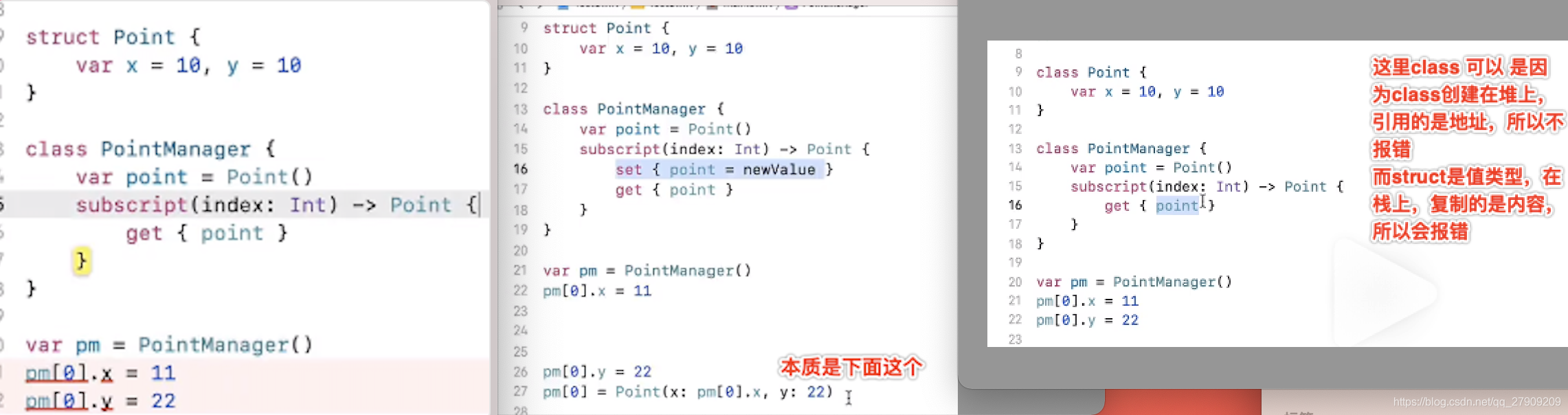 本质就是方法(函数)、不占用实例的内存,枚举、结构体、类都可以定义计算属性