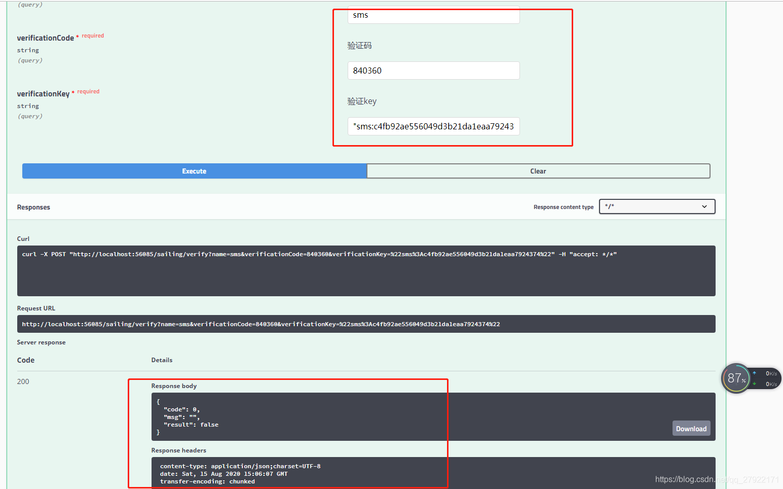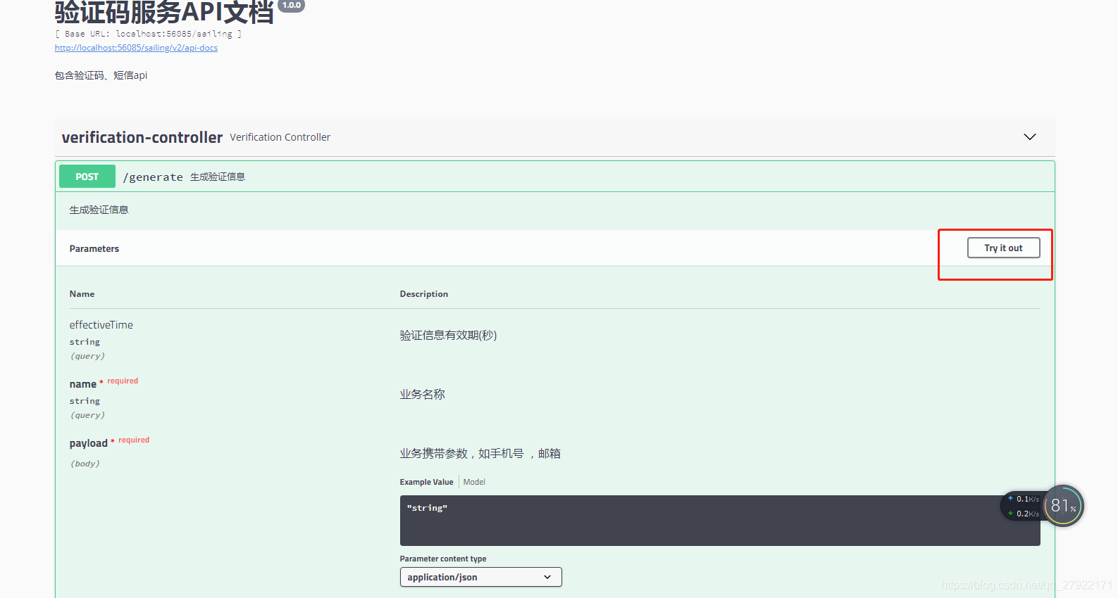 1. 接口说明:http://localhost:56085/sailing/swagger-ui.html#/verification-controller/verifyUsingPOST