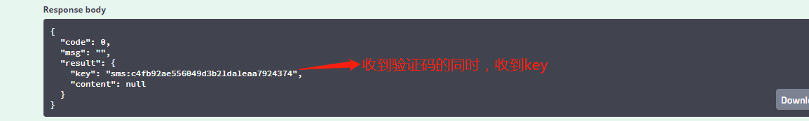 verficationCode 就是我们要发送的验证码,verificationKey是我们获得验证码时,同时收到的key