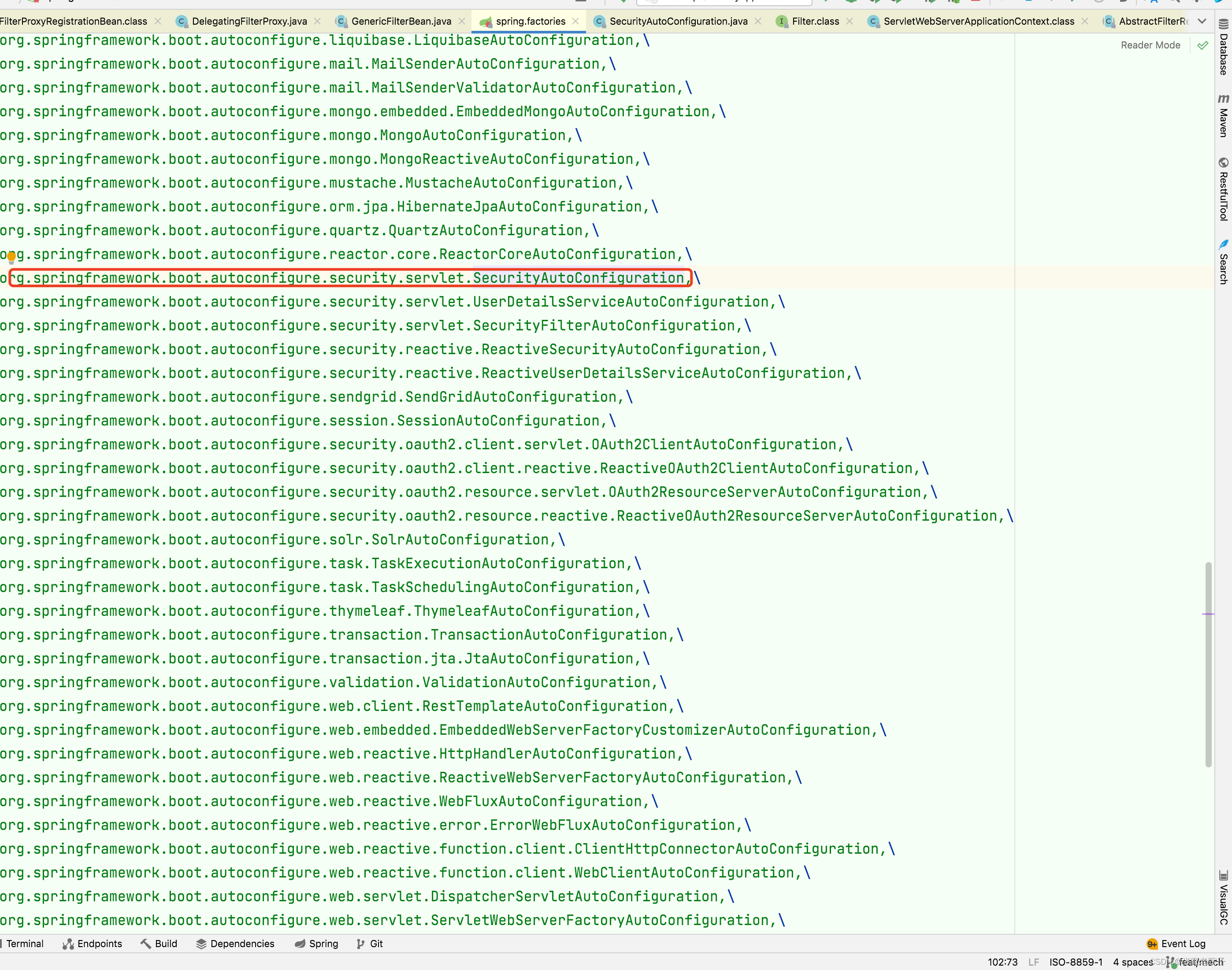 - Spring Security自动装配Filter代理类、ignore()等配置信息装配过程;