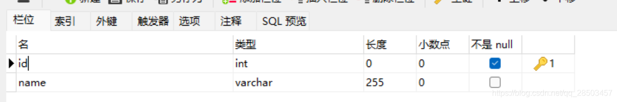 * 自增主键,not null