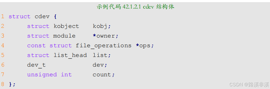 在 Linux 新的驱动框架中,中使用 cdev 结构体表示一个字符设备,cdev 结构体在 include/linux/cdev.h 文件中的定义如下: