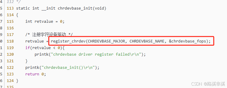 static inline int register_chrdev(unsigned int major, const char *name, const struct file_operations *fops) static inline void unregister_chrdev(unsigned int major, const char *name)register_chrdev 函数用于注册字符设备,此函数一共有三个参数,这三个参数的含义如下:
