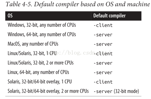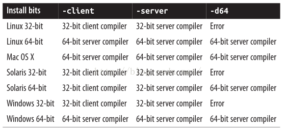 - 对于不同平台,如果没有传入-server或-client参数,则会使用默认的编译器版本,具体如下图所示: