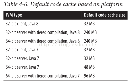- 各个版本的JVM,Code Cache的默认大小,如下图所示:
