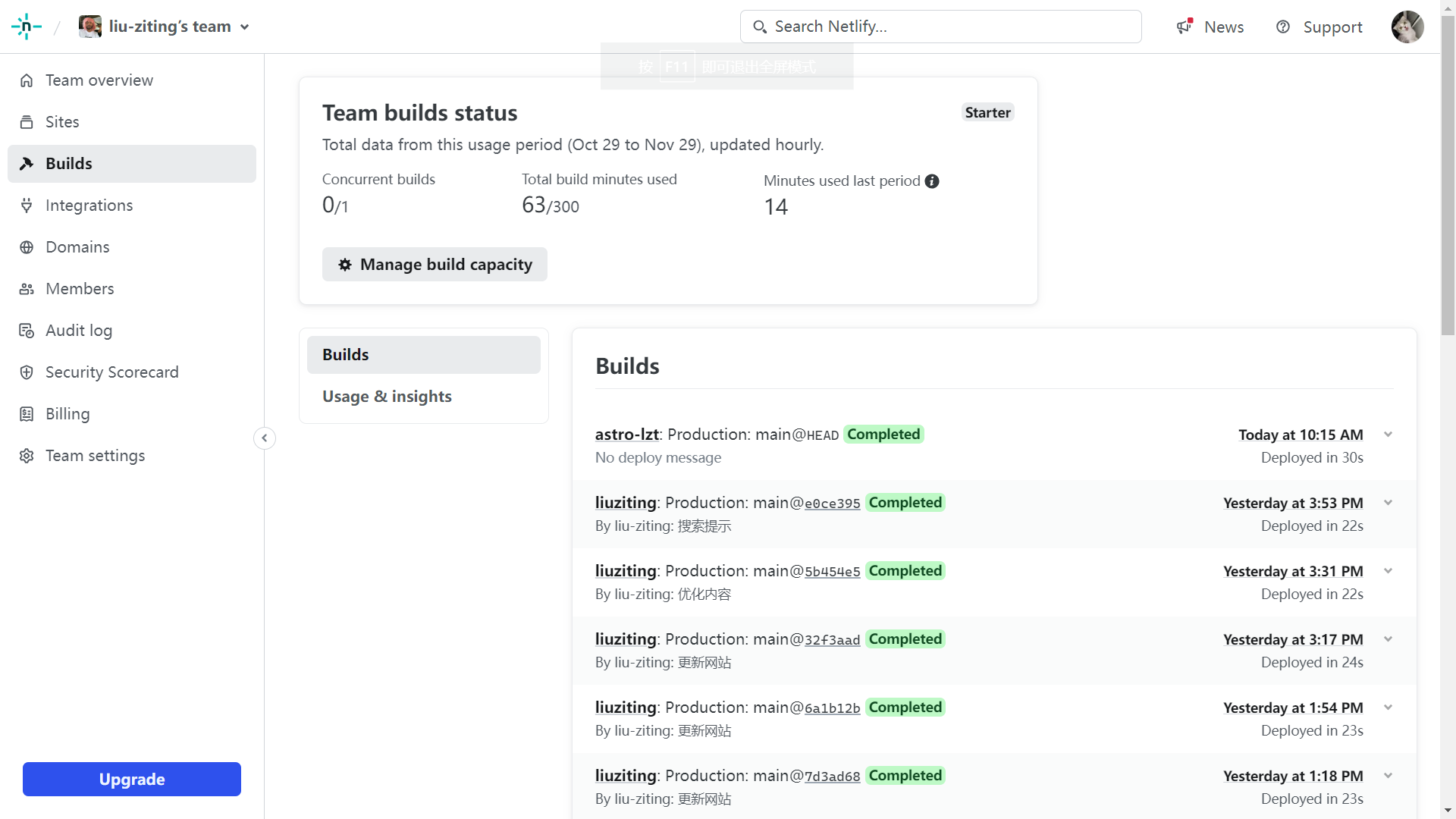 接下来你只需要本地修改文件推送到你刚刚关联的仓库,Netlify就会自动检测并拉取你的最新代码进行自动部署,你要做的只是推送一下代码即可!