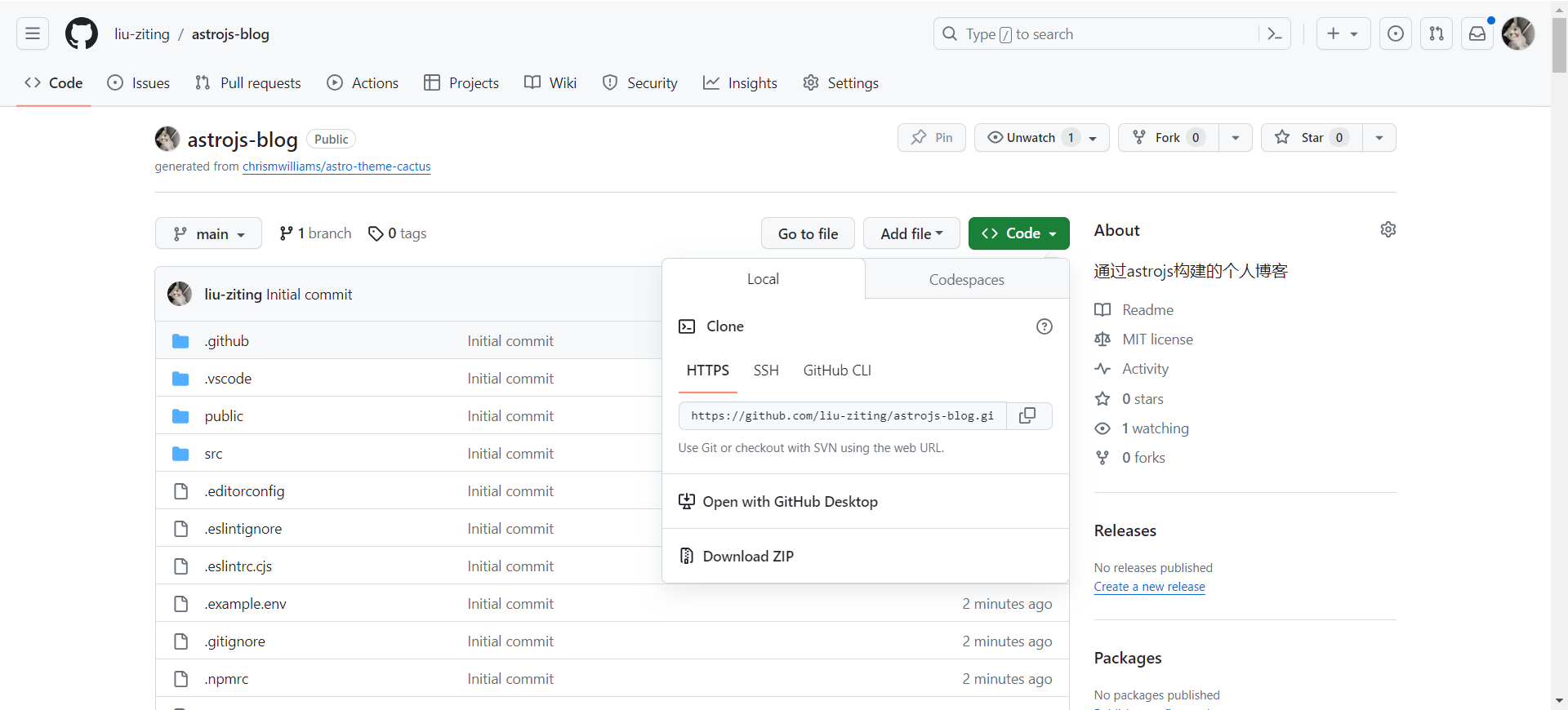这样基于astro的个人博客站点就构建好了,我们可以通过互联网访问刚刚配置的域名:Home • Astro Theme Cactus