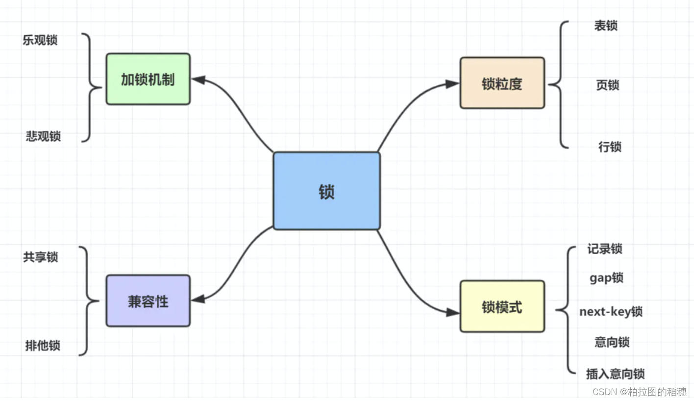 有没有觉得MySQL里面的锁有很多?比如排它锁、共享锁、意向锁、插入意向锁、间隙锁、临界锁、记录锁、全局锁锁、表锁、页锁以及行销等。其实,这么多锁存在相互包含的情况,他们是数据库锁不同分类标准导致的。