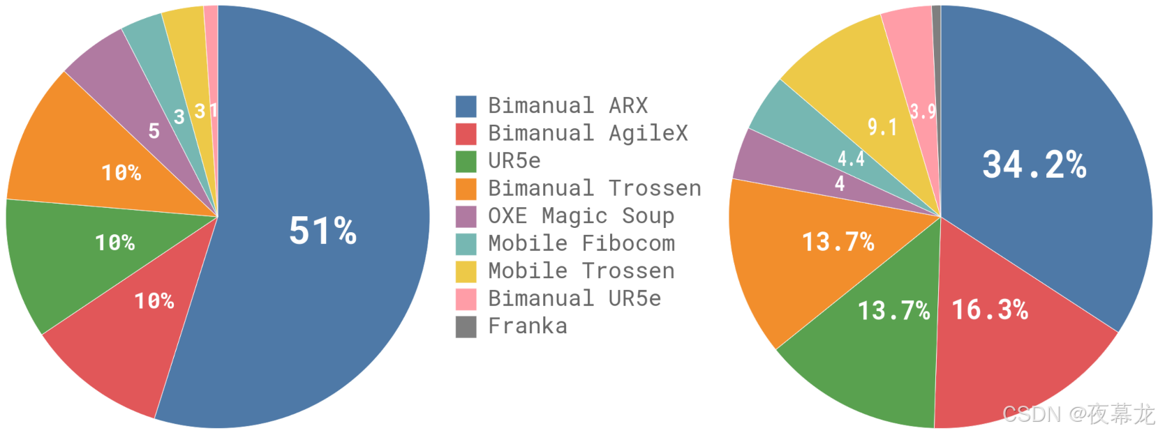 数据覆盖了7种不同配置的机器人、68类任务,概括如下: