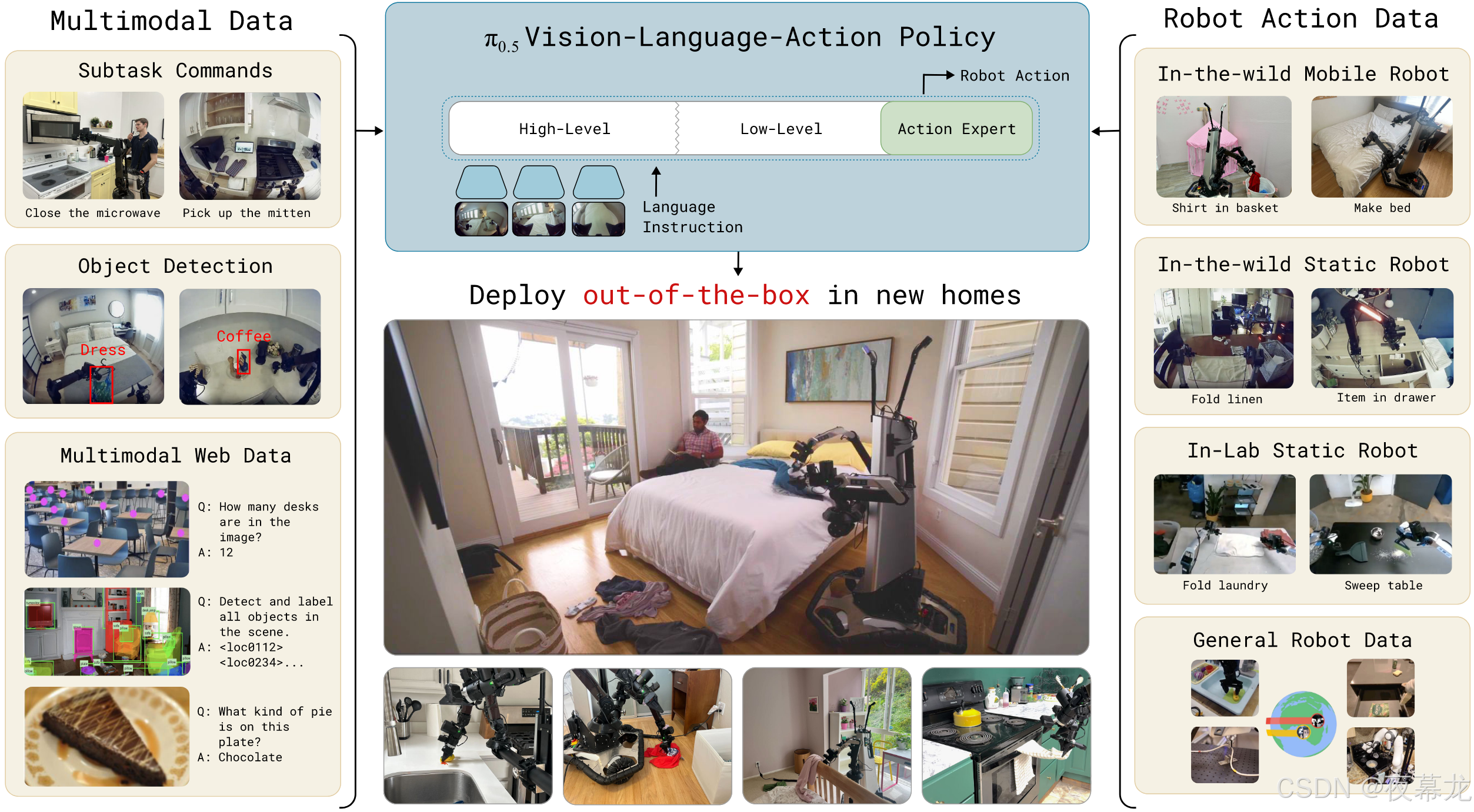 VLA 个人感觉现阶段首推 — π0,毕竟企业开源的比高校成熟度还是高一点的,以及背后做了很多隐藏工作: