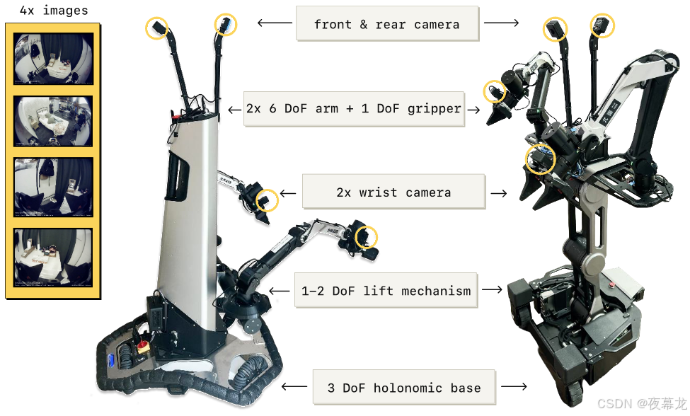 Mobile Fibocom: 双臂+全向底盘,17维动作空间,3摄像头