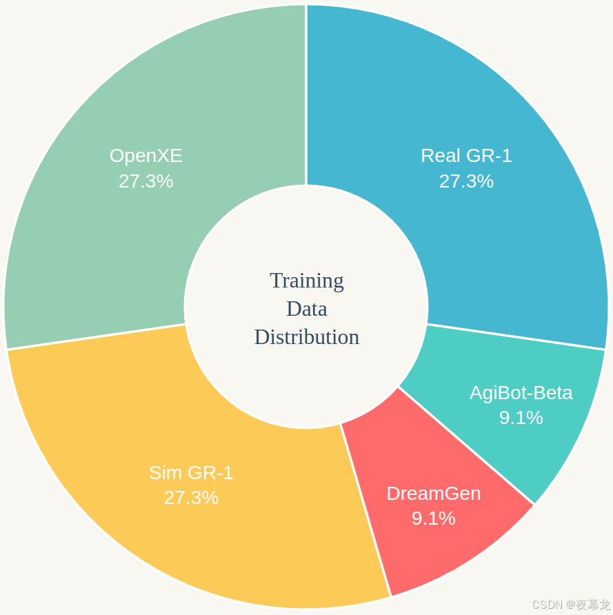 预训练混合数据集包括内部的 GR-1 数据、OpenXE、模拟的 GR-1(又名 DexMG)、来自 DreamGen 的神经轨迹以及 AgiBot-Beta: