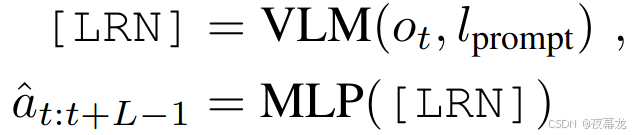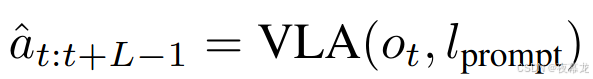 对每个action chunk At,采样噪声 ϵ,用 τ 混合得到 noisy action Aτt。网络输出