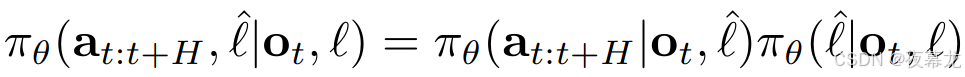 数学上,模型要拟合的目标分布是 p(At∣ot):给定观测 ot(包含图像、语言指令、本体状态),预测未来动作块 At(长度为H=50步)。每个观测 ot 由多张 RGB 图片(通常2-3张)、一段语言指令 token 序列和本体状态(关节角等)组成。图像和本体状态分别由专用 encoder 处理,最后都投影到和语言 token 一样的 embedding 空间,与文本一起进入 transformer 主干