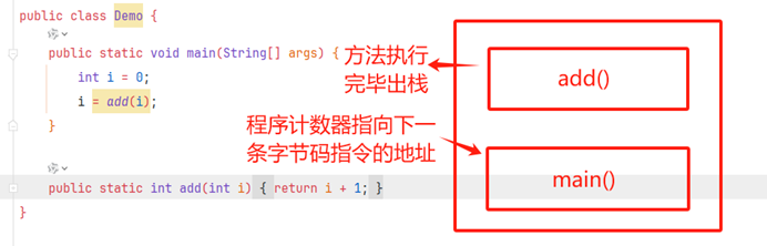 方法出口:方法执行完后,程序计数器将指向下一条将要执行的字节码指令的地址。
