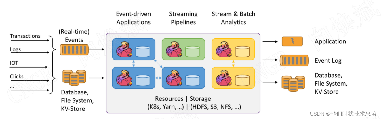 从上面加粗的文字就体现了FLINK的几大优势,擅长处理无界和有界数据 精确的时间控制和状态化。