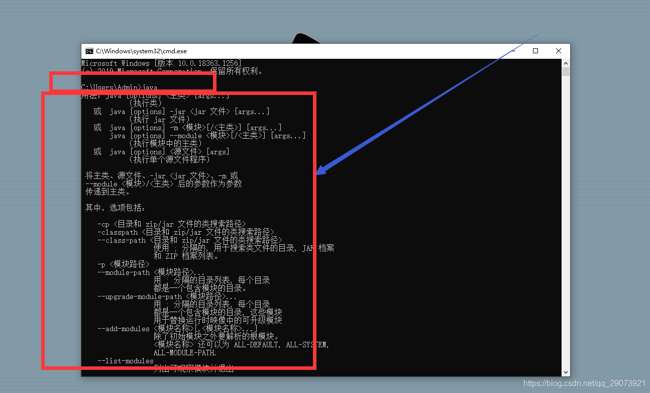 3.选中黑窗口,在黑窗口闪烁的地方输入,java,然后按下enter键。(若出现图A情况则说明本地已安装jdk,若出现图B情况则说明本地没有安装jdk)
