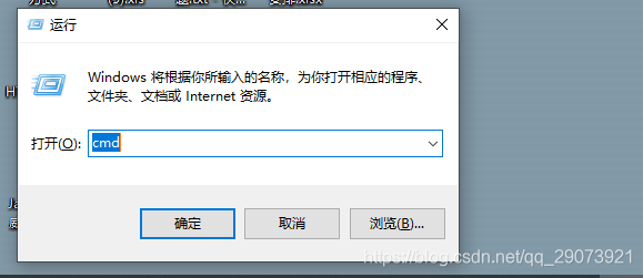 2.然后在框框内输入,cmd,点击确定,然后就会出现一个黑窗口