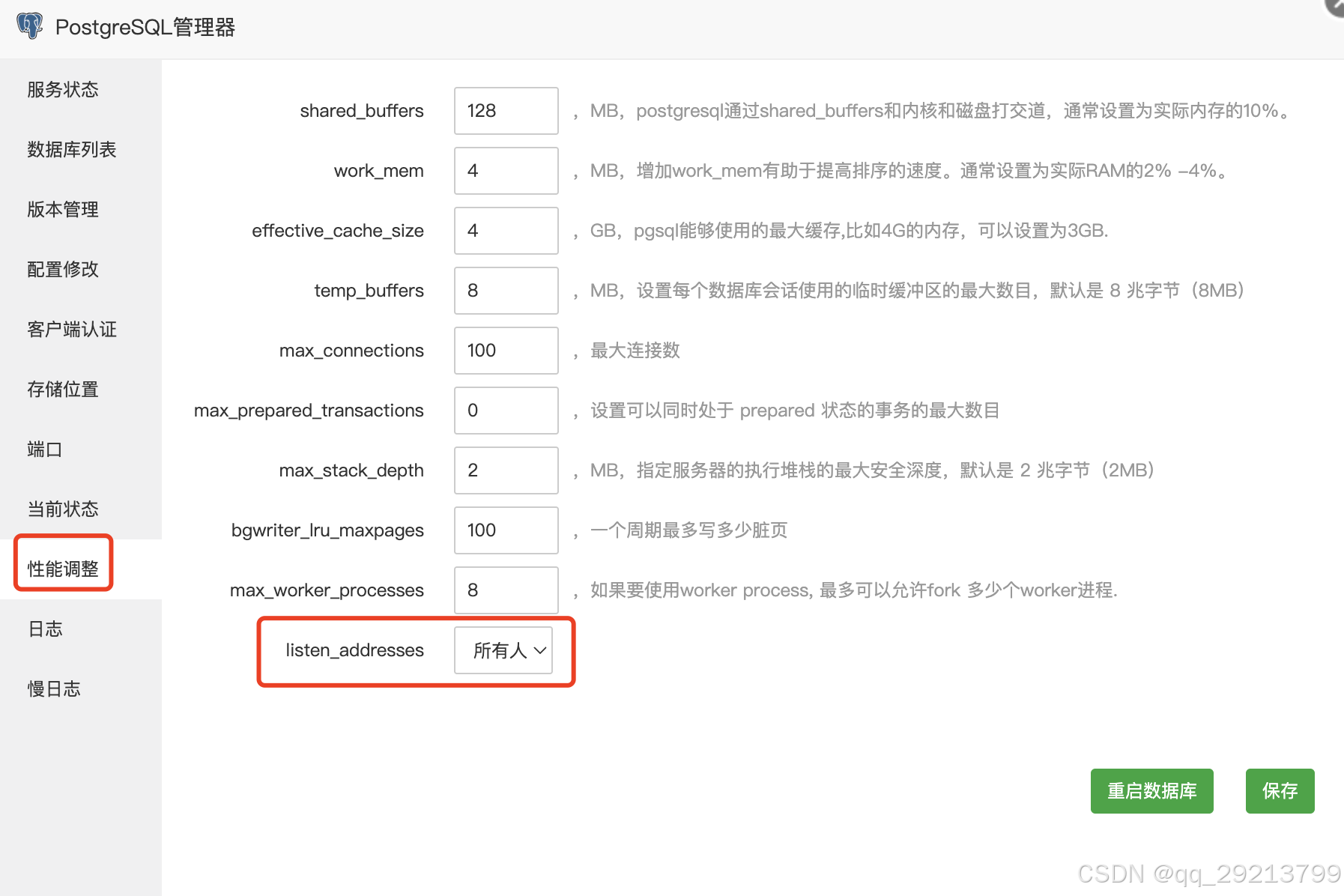 3.设置 监听地址为 所有人,允许外部访问所有数据库
