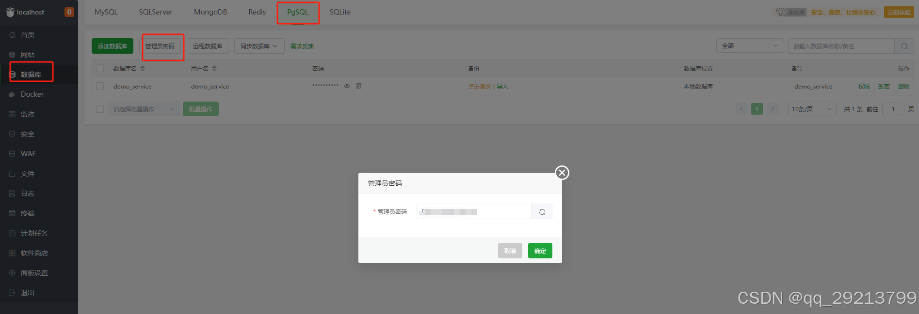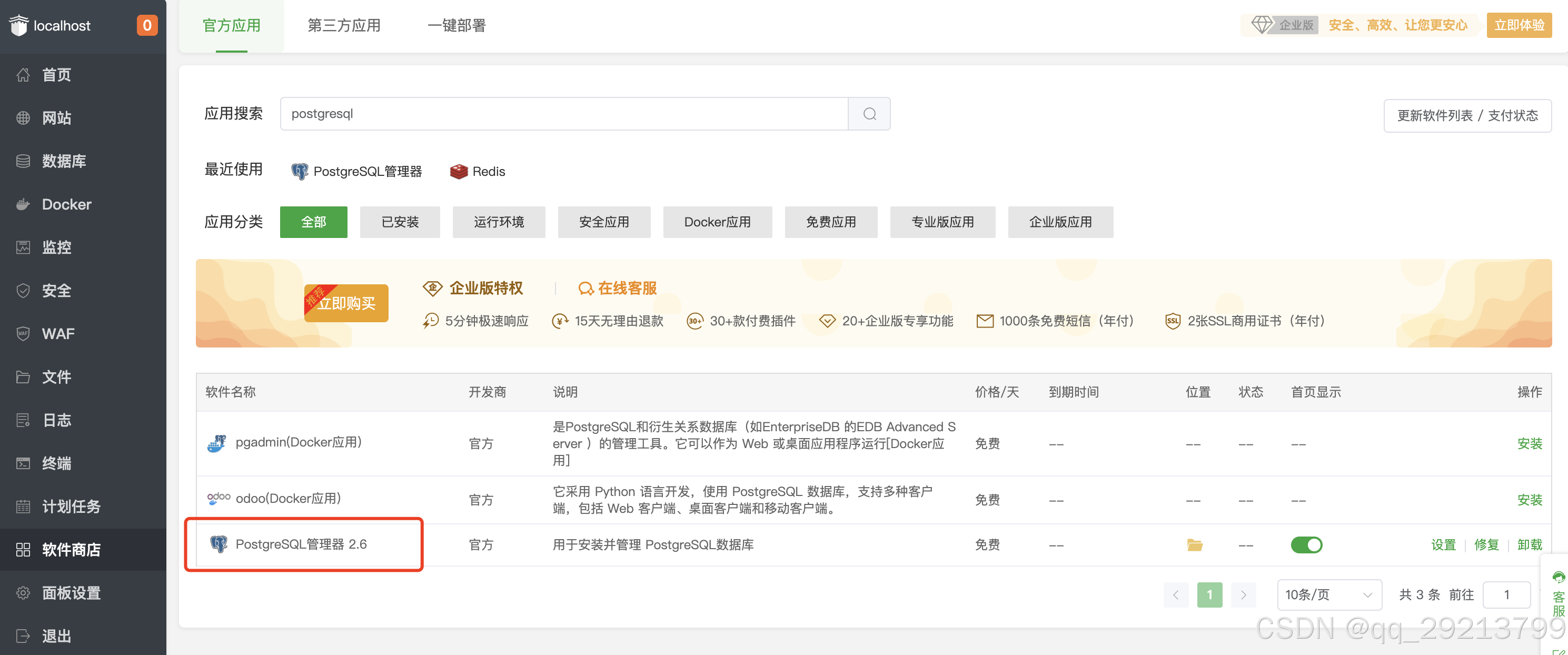 1.宝塔软件商店 下载PostgreSQL 管理器