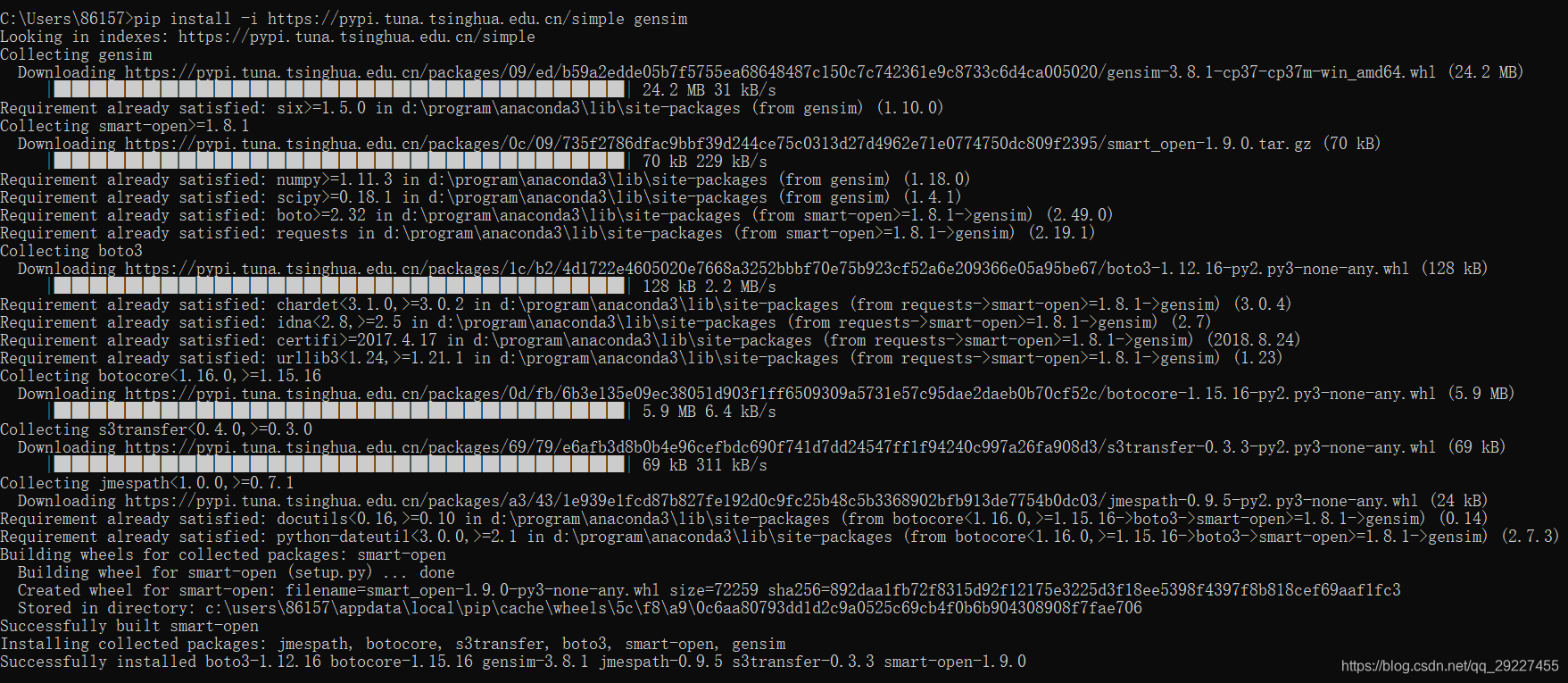 pip install -i https://pypi.tuna.tsinghua.edu.cn/simple gensim