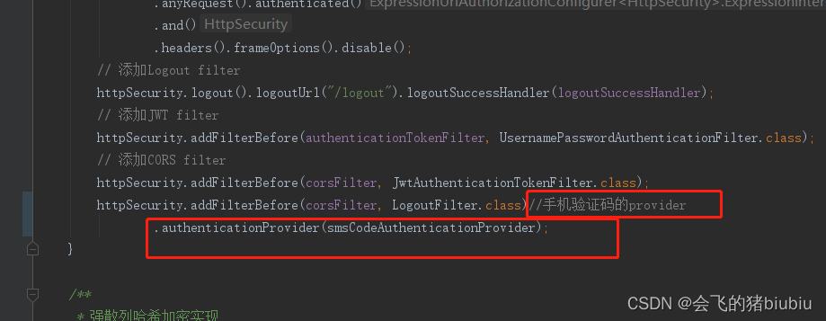 httpSecurity.addFilterBefore(corsFilter, LogoutFilter.class)//手机验证码的provider