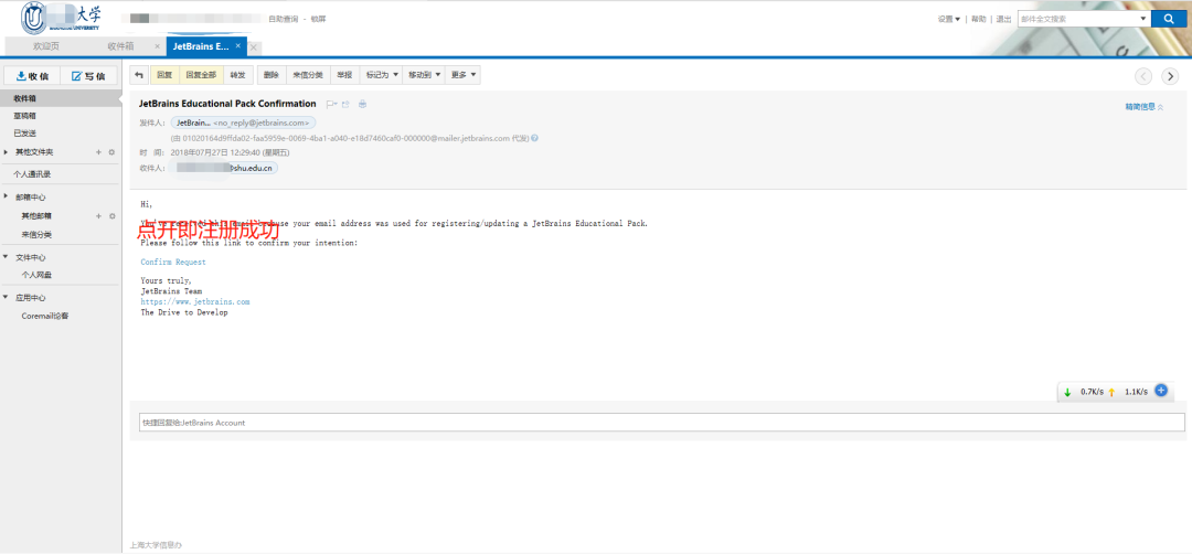 注册之后还需要激活账号权限,等会还有一封邮件: