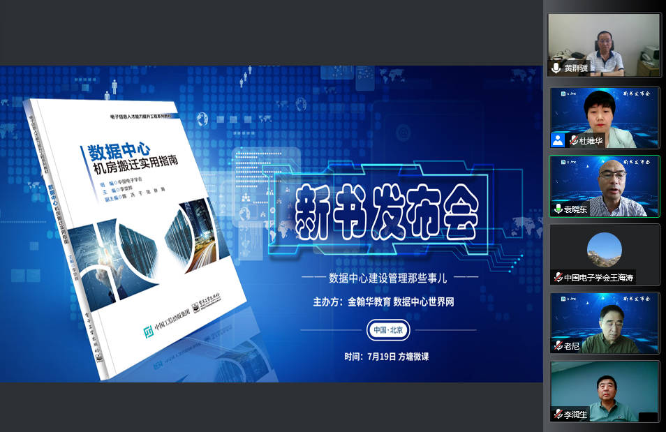 2022年7月19日下午,由数据中心世界网与金翰华教育联合主办的《数据中心机房搬迁实用指南》新书发布会暨数据中心建设管理那些事儿(方塘微课)在线上成功举办。来自数据中心行业的专家老师、上下游厂商、用户超过千人参与了此次活动。中国电子学会教育工作委员会副秘书长王海涛出席会议,会议由金翰华教育总经理杜维华女士主持。