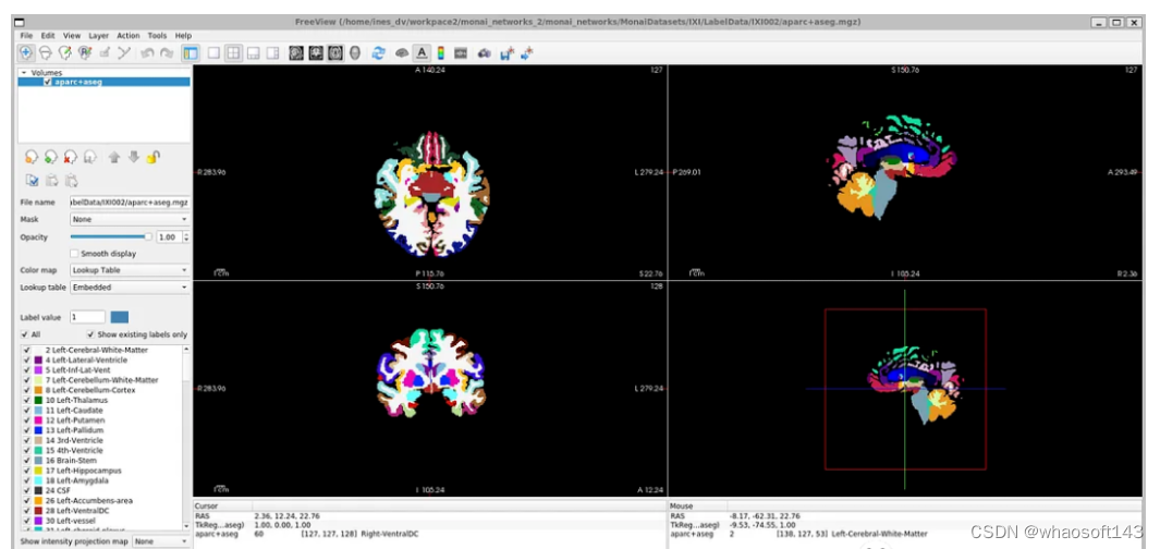 IXI数据集由581个健康受试者的未标记MRI T1扫描组成。这些数据是从伦敦3家不同的医院收集来的。使用该数据集的主要缺点是标签不是公开可用的,因此为了遵循与研究论文中相同的方法,本文将使用FreeSurfer为这些MRI T1扫描生成分割。