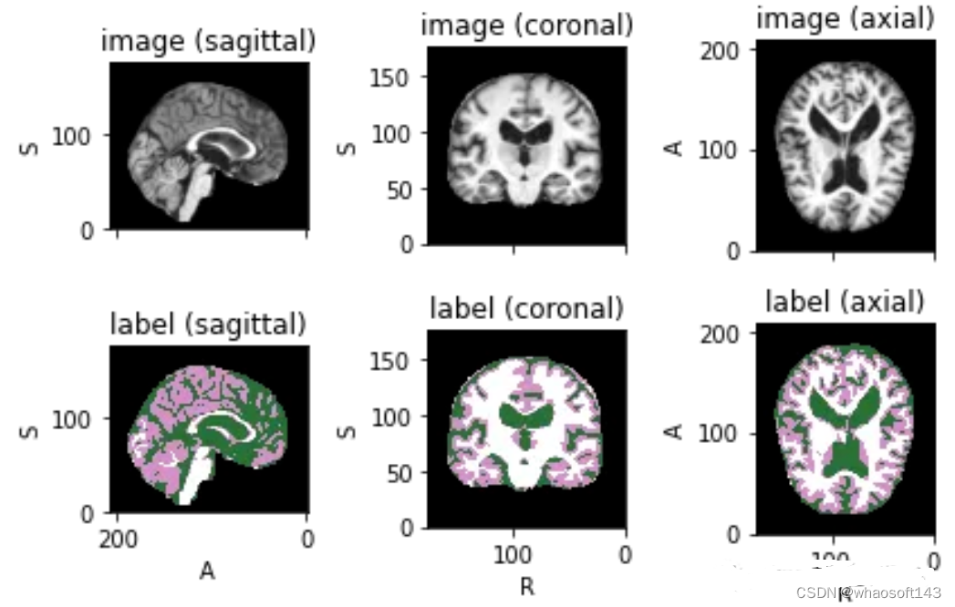 为了可视化带有相应标签的图像,可以使用TorchIO,这是一个Python库,用于深度学习中多维医学图像的加载、预处理、增强和采样。