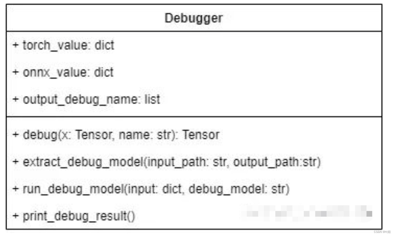 由于 torch.onnx.export 模型使用的是跟踪法,模型的 forward 函数会被执行一次, debugger.debug 操作可以把 PyTorch 模型的调试张量输出记录在 debugger.torch_value 里。