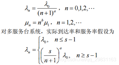 在前面的各类排队模型的分析中,均假设顾客的到达率为常数 λ ,服务台的服务 率也为常数 μ 。而在实际的排队问题中,到达率或服务率可能是随系统的状态而变化 的。例如,当系统中顾客数已经比较多时,后来的顾客可能不愿意再进入系统;服务员 的服务率当顾客较多时也可能会提高。因此,对单服务台系统,实际的到达率和服务率 (它们均依赖于系统所处的状态n )可假设为
