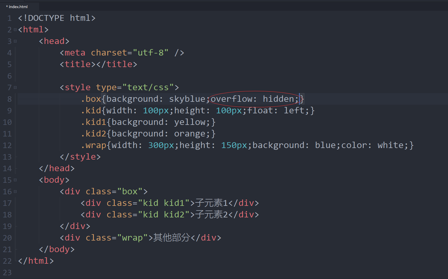 给一个元素中设置overflow:hidden ,那么该元素的内容若超出了给定的宽度和高度属性,那么超出的部分将会被隐藏,不占位。