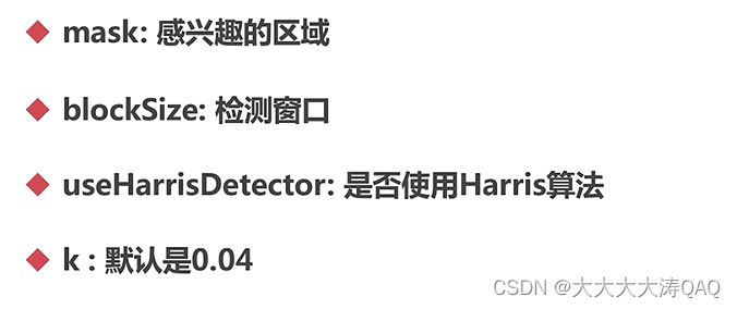 API:cornerHarris(img, dst, blockSize, ksize, k )