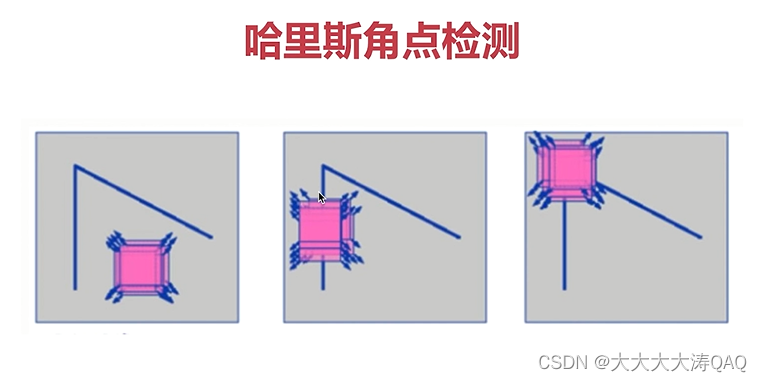 角点:特征中最重要的就是角点;灰度梯度的最大值对应的像素;两条线的交点;极值点(一阶导最大值,但二阶导为0)