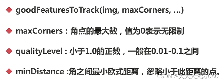 API:goodFeaturesToTrack(img , maxCorners, .......)