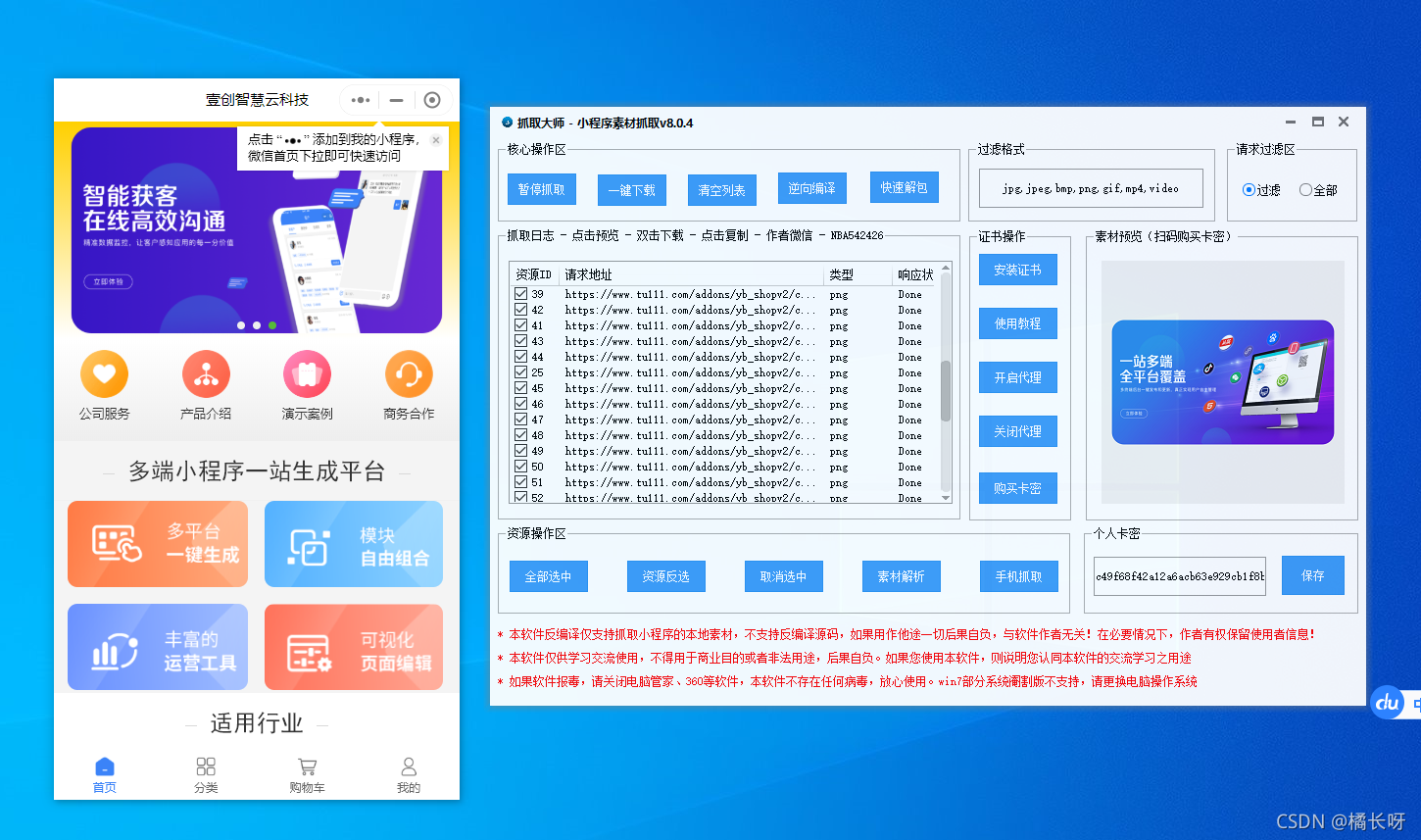 一键抓取小程序的所有图片、视频、音频等文件并下载,如下图所示