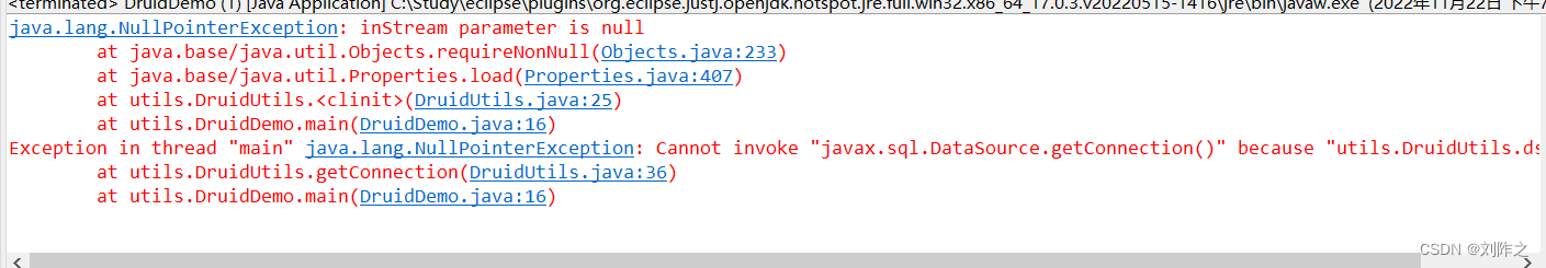在连接数据库时,发现出现inStream parameter is null问题的报错