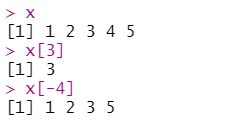 根据元素在集合中的位置来访问。R中的元素位置是从1开始的。负数表示除了这个元素之外的所有元素。