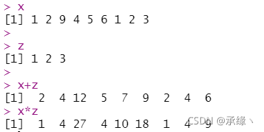 两个向量长度不等的向量运算时,其中一个向量的长度必须是另外一个的整数倍数才能运算: