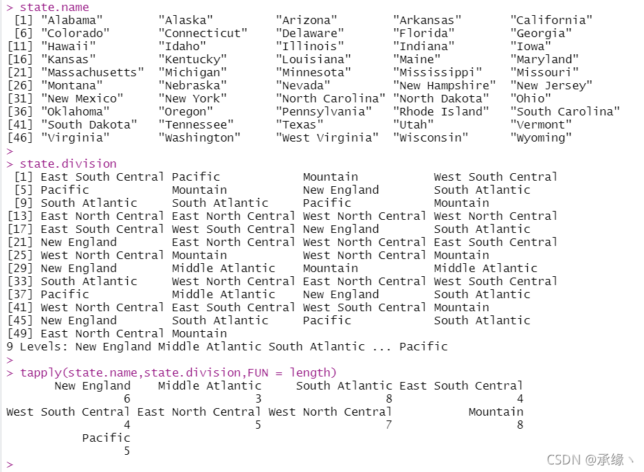 通过名字来访问:state.center(c("first","fds"))或者更高效的li$first