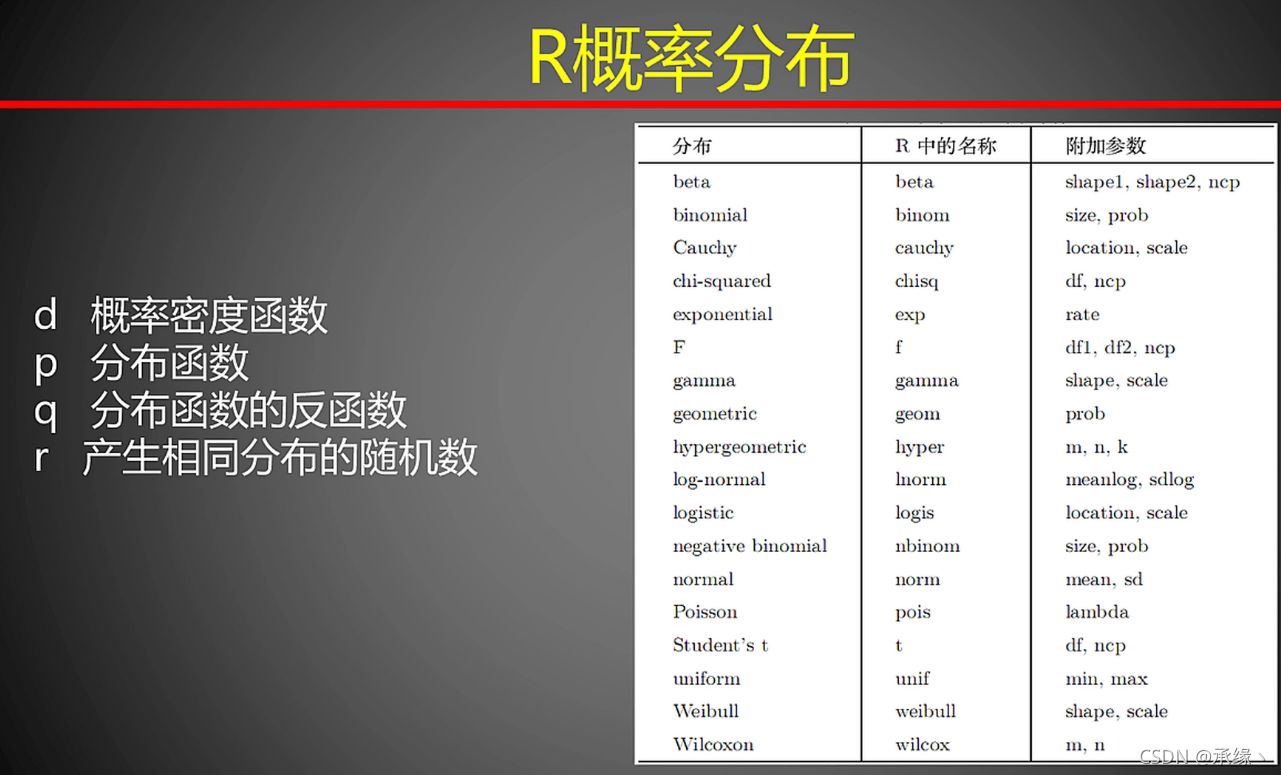 概率论是统计学的基础,R有许多用于处理概率,概率分布以及随机变量的函数,R对每一个概率分布都有一个简称,这个名称用于识别与分布相联系的函数,这部分涉及到很多统计学基础的理论知识,比如随机实验、样本空间、对立与互斥、随机事件与必然时间、概率密度、概率分布等。