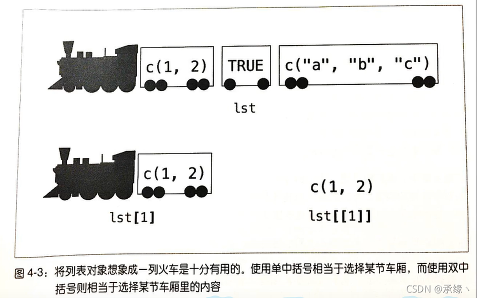 2.向量只能存储一种数据类型,列表中的对象可以是R中的任何数据结构,甚至列表本身。