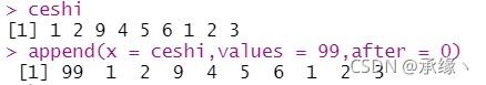 删除某个元素:ceshi <- ceshi[-c(1:3)]
